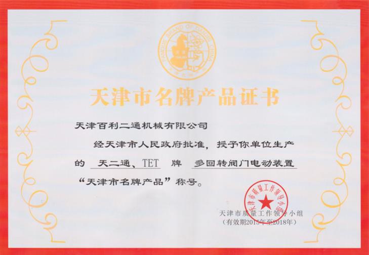 多回轉(zhuǎn)閥門(mén)電動(dòng)裝置名牌產(chǎn)品證書(shū)