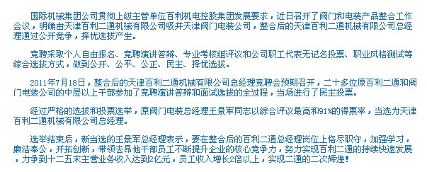 天津百利二通機(jī)械有限公司實(shí)現(xiàn)電裝產(chǎn)業(yè)整合