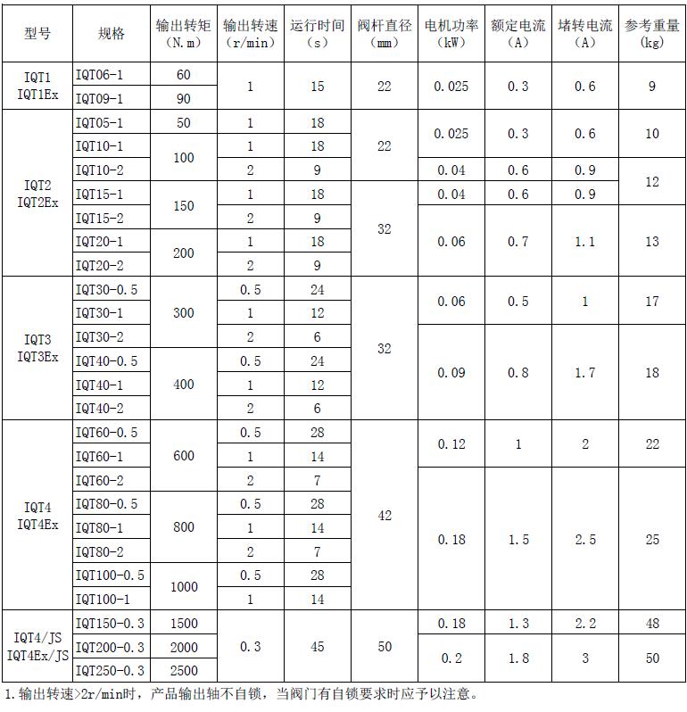 IQT1~IQT4/JS(220V單相電機)系列技術參數(shù)表