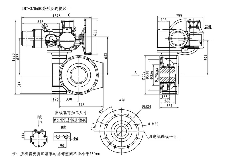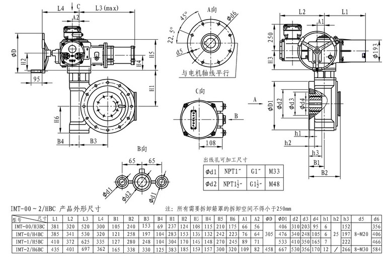 IMT/HBC系列智能型電動裝置是IMT系列多回轉(zhuǎn)智能型電動裝置與HBC蝸輪減速器的組合型式,它適合球閥、蝶閥等部分回轉(zhuǎn)閥門的驅(qū)動控制。 IMT/HBC智能型電動裝置具有以下特點:結(jié)構(gòu)設計堅固可靠,產(chǎn)品規(guī)格齊全,驅(qū)動轉(zhuǎn)矩范圍大且動力輸出穩(wěn)定, 具有良好的自鎖性能。 HBC輸出軸結(jié)構(gòu)獨特,裝有與閥桿連接的漸開線花鍵接頭,產(chǎn)品的安裝調(diào)試方便。