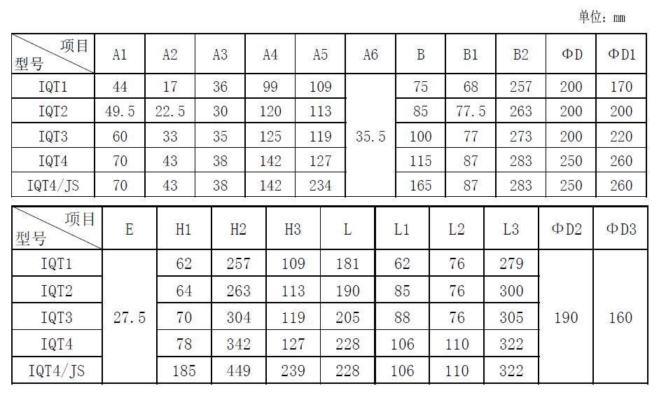IQT1~I(xiàn)QT4/JS(220V單相電機)系列技術(shù)參數(shù)表