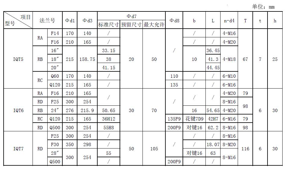 IQT5~IQT7系列技術(shù)參數(shù)表