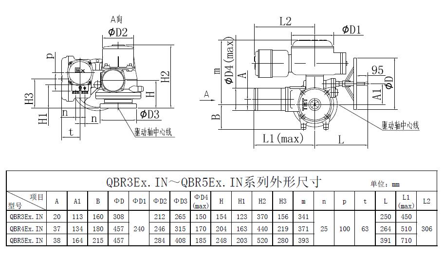 QBR3~QBR5是我公司研制的部分回轉(zhuǎn)閥門電動(dòng)裝置,控制轉(zhuǎn)矩范圍:900N.m~12000N.m。該電動(dòng)裝置可與球閥﹑蝶閥等閥瓣做90°回轉(zhuǎn)的閥門組合成電動(dòng)閥門,其功能是控制閥門的啟閉。該電動(dòng)裝置能夠進(jìn)行單機(jī)或多機(jī)室內(nèi)控制遠(yuǎn)距離控制電動(dòng)操作和現(xiàn)場手動(dòng)或電動(dòng)操作,可廣泛地應(yīng)用在具有管道閥門的工業(yè)系統(tǒng)。該產(chǎn)品的防護(hù)等級為IP67,隔爆型產(chǎn)品(型號中有Ex)的隔爆等級 為dⅡBT4。