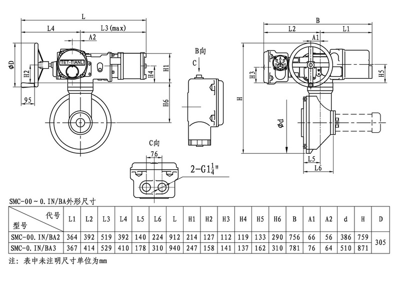 SMC/BA系列電動裝置是SMC系列中小轉矩多回轉電動裝置與BA圓錐齒輪減速器的一種組合型式,它適合閘閥、截止閥等多回轉閥門的驅動控制。SMC/BA電動裝置具有以下特點:以較小轉矩規(guī)格的SMC電動裝置與BA減速器組合可獲得更大的輸出轉矩。在輸出轉速允許的條件下,選用該產(chǎn)品能夠提高所選電動裝置規(guī)格的通用性,便于產(chǎn)品的使用、維護。