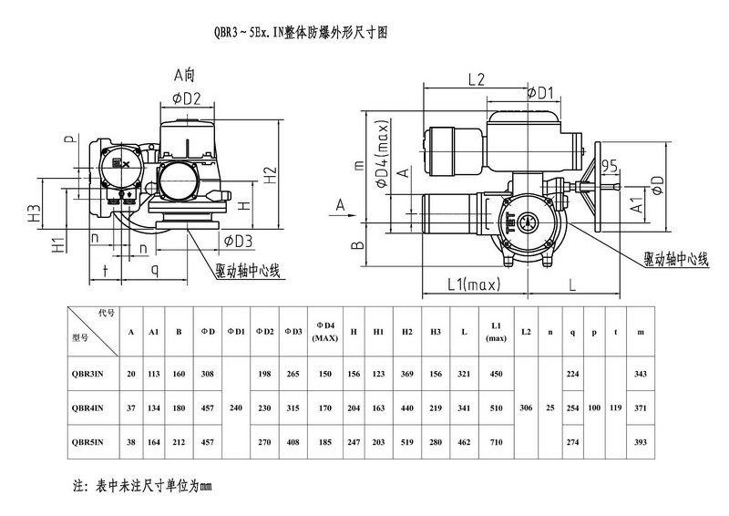 QBR3QBR5是我公司研制的部分回轉(zhuǎn)閥門(mén)電動(dòng)裝置,控制轉(zhuǎn)矩范圍:900N.m12000N.m。該電動(dòng)裝置可與球閥﹑蝶閥等閥瓣做90°回轉(zhuǎn)的閥門(mén)組合成電動(dòng)閥門(mén),其功能是控制閥門(mén)的啟閉。該電動(dòng)裝置能夠進(jìn)行單機(jī)或多機(jī)室內(nèi)控制遠(yuǎn)距離控制電動(dòng)操作和現(xiàn)場(chǎng)手動(dòng)或電動(dòng)操作,可廣泛地應(yīng)用在具有管道閥門(mén)的工業(yè)系統(tǒng)。該產(chǎn)品的防護(hù)等級(jí)為IP67,隔爆型產(chǎn)品(型號(hào)中有Ex)的隔爆等級(jí) 為dBT4。