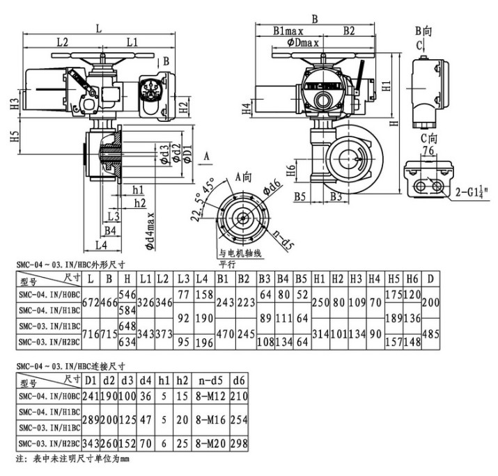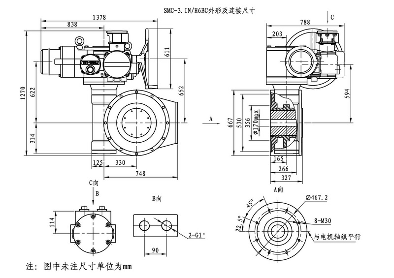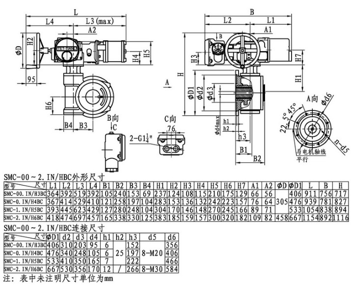 SMC/HBC系列電動(dòng)裝置是SMC系列多回轉(zhuǎn)電動(dòng)裝置與HBC蝸輪減速器的組合型式,它適合球閥、蝶閥等部分回轉(zhuǎn)閥門(mén)的驅(qū)動(dòng)控制。SMC/HBC電動(dòng)裝置具有以下特點(diǎn):結(jié)構(gòu)設(shè)計(jì)堅(jiān)固可靠,產(chǎn)品規(guī)格齊全,驅(qū)動(dòng)轉(zhuǎn)矩范圍大且動(dòng)力輸出穩(wěn)定, 具有良好的自鎖性能。 HBC輸出軸結(jié)構(gòu)獨(dú)特,裝有與閥桿連接的漸開(kāi)線(xiàn)花鍵接頭,產(chǎn)品的安裝調(diào)試方便。